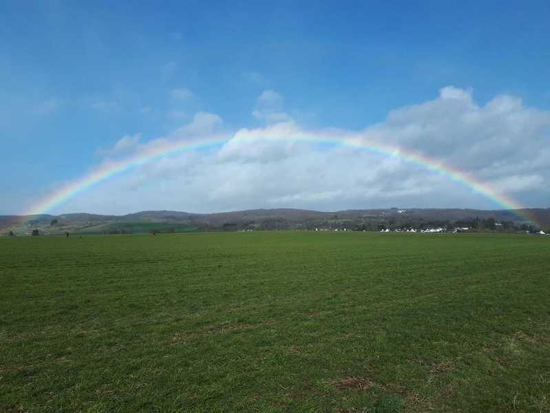 die einladende Rheinanlage mit Blick auf die Raiffeisenbrücke